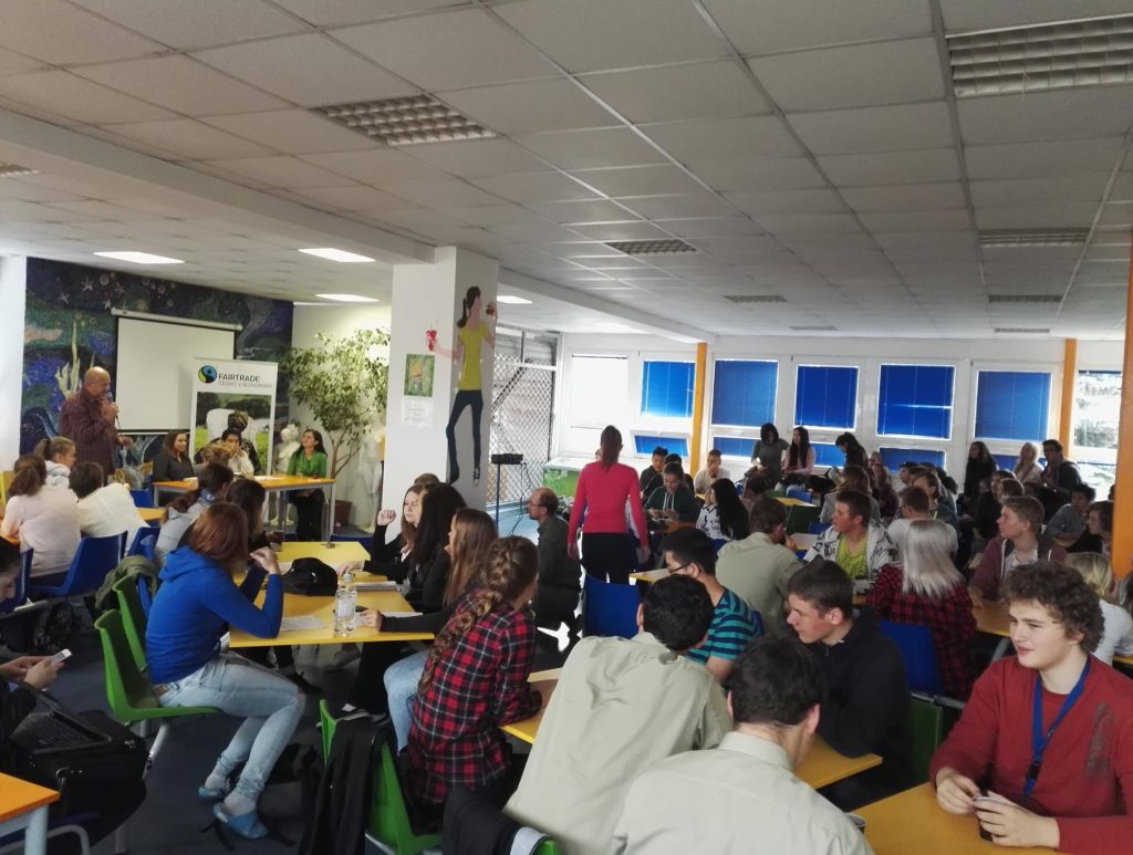 Na škole ve výuce využívají materiály organizátorů kampaně Fairtradová města. Témata se na škole učí v rámci výuky předmětu Občanské dovednosti ve kvintě (vztahy mezi různými kulturami), Společenských věd v sextě a oktávě (fair trade, ekonomický rozvoj), Výchovy k občanství v tercii (přirozené a sociální rozdíly mezi lidmi) a částečně i v předmětech Ekologie, Zeměpis, Ruský jazyk, Anglický jazyk a Biologie.
